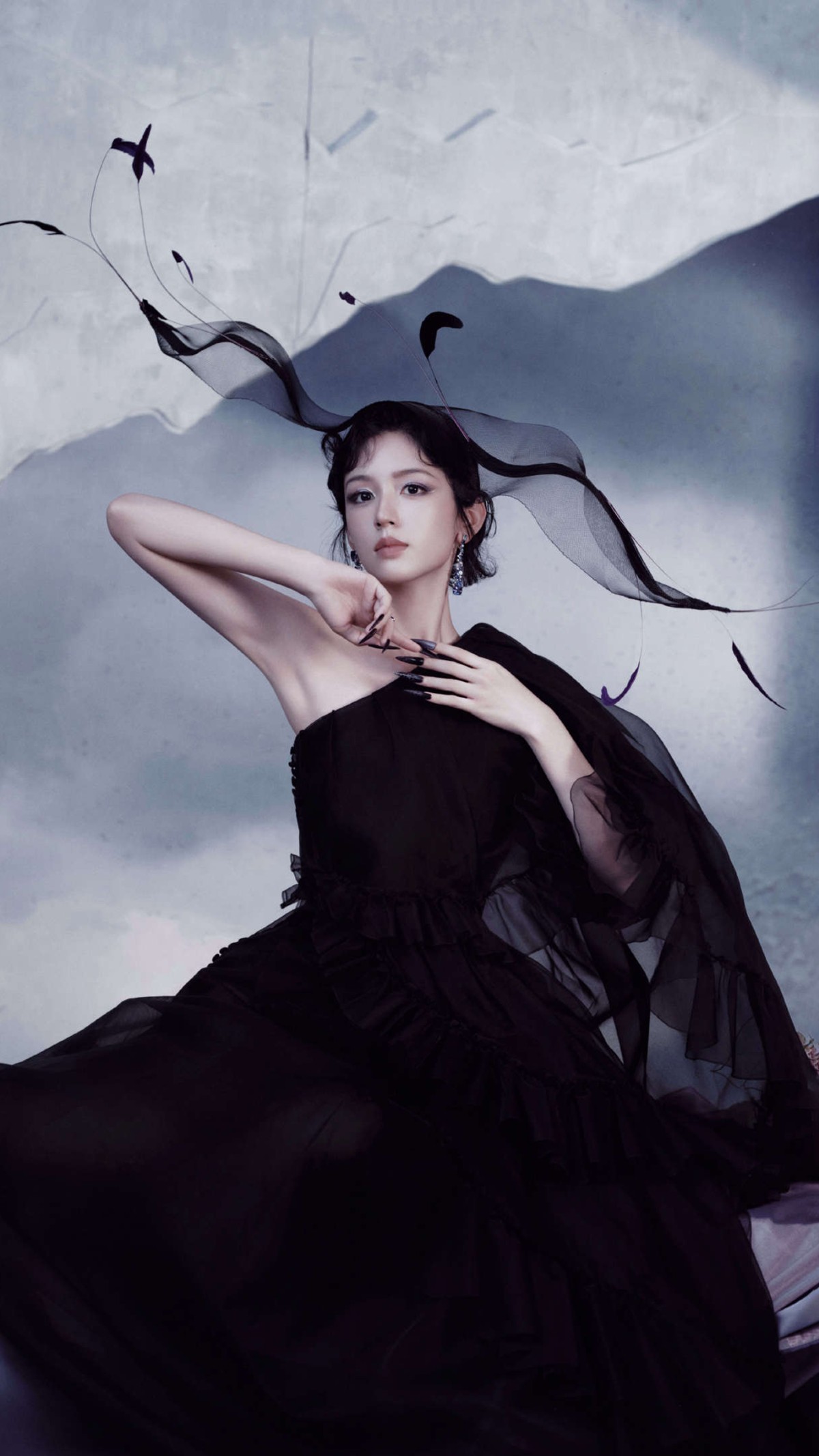 周也的这一造型灵感源自电影《佩小姐的奇幻城堡》,巧妙地融合了暗黑与灵动元素。冷冽光影中,飘落的黑羽如同夜的精灵在翩翩起舞,被粉丝们形容为“暗夜女巫的致命美学”。哥特式妆容精致而深邃,超长美甲更是强化了女巫的特质,让她看起来既神秘又充满力量。